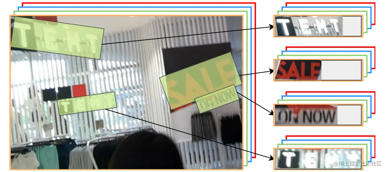 - RoIRotate 模块要通过仿射变换转换文本区域,所以 FOTS 只能识别文字中心在一个线上的文本行,无法处理弯曲文本行