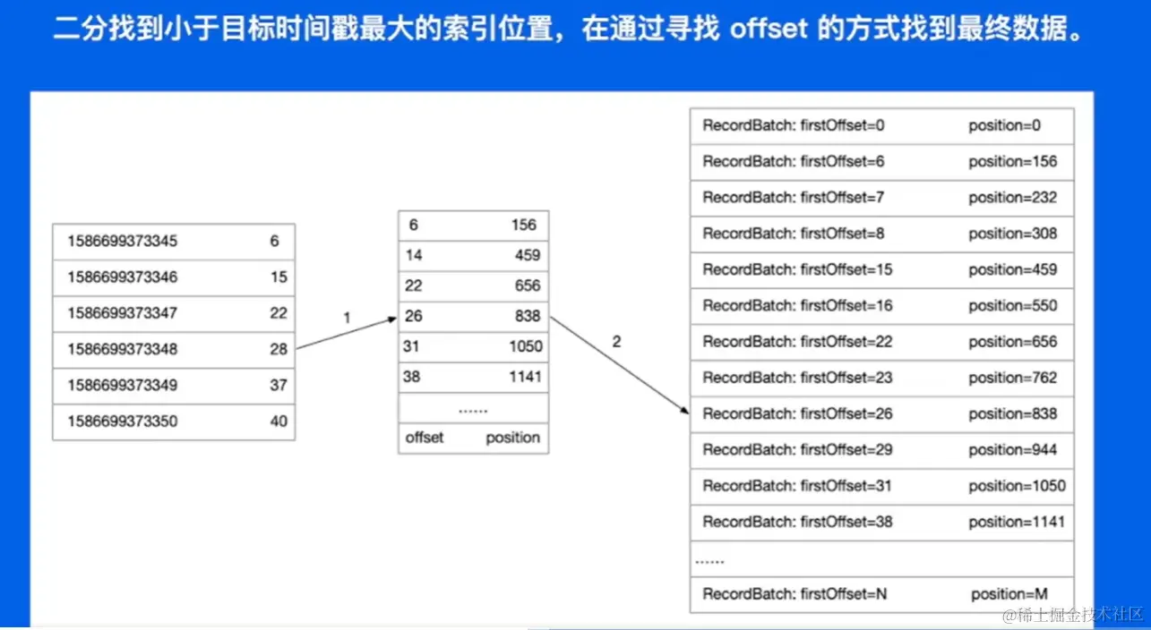 通过时间戳找到对应的 offset,然后在找到最终数据,与上面的类似