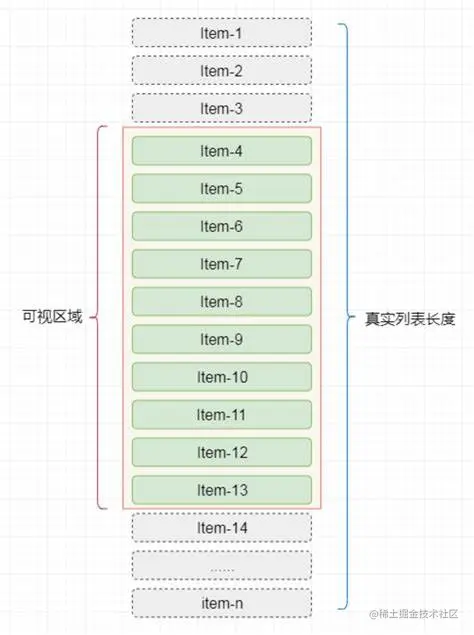 - 只渲染可视区域内的列表项,而不是渲染整个列表