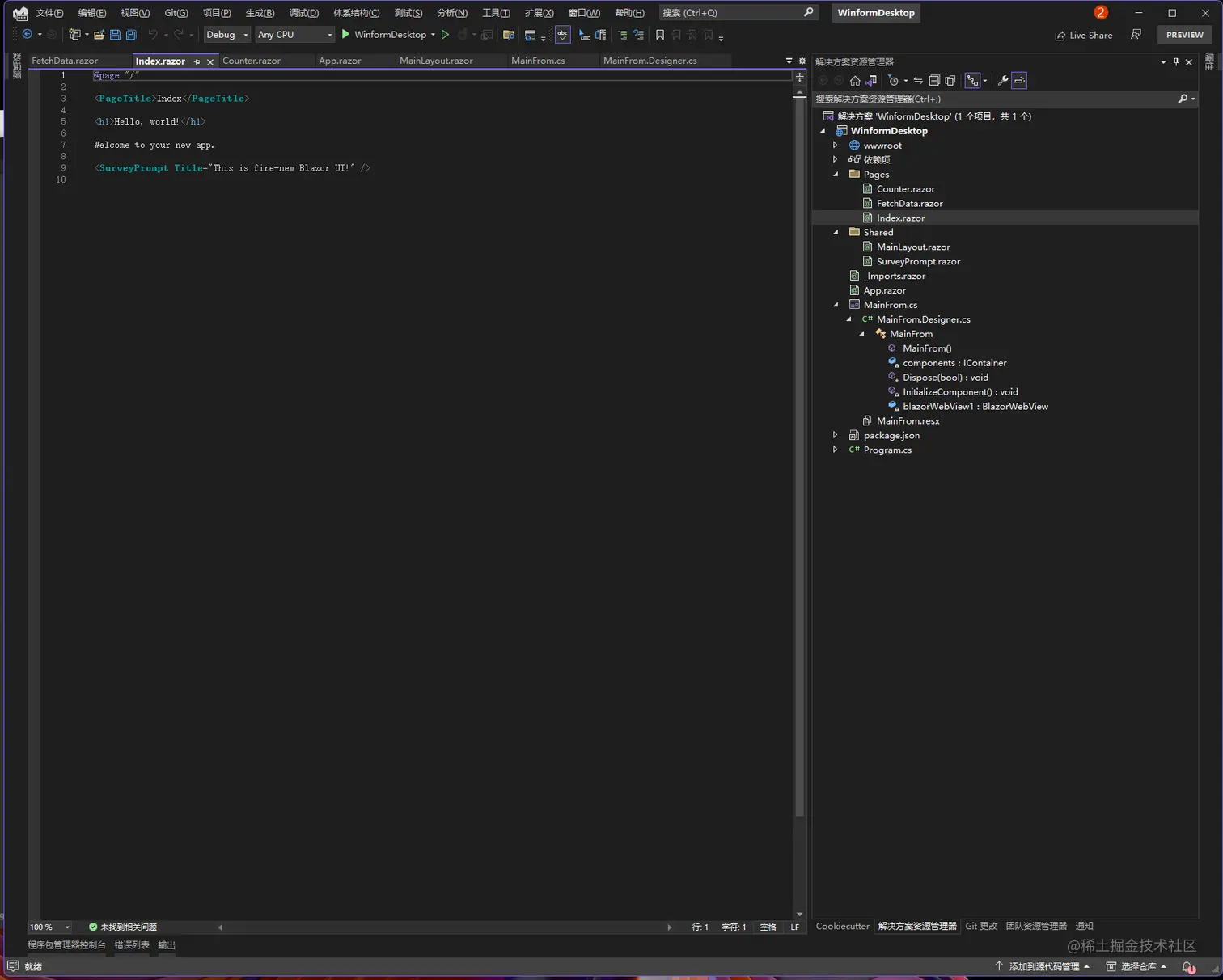 在Winform中一分钟入门使用好看性能还好的Blazor Hybrid