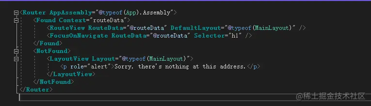 看到上图,在Pages/Index.razor组件最上面有一个@page "/"的代码,这个是给当前的组件进行路由绑定,资源当加载/路由的时候就会将当前的组件加载到指定的Layout的组件中的@Body当中。