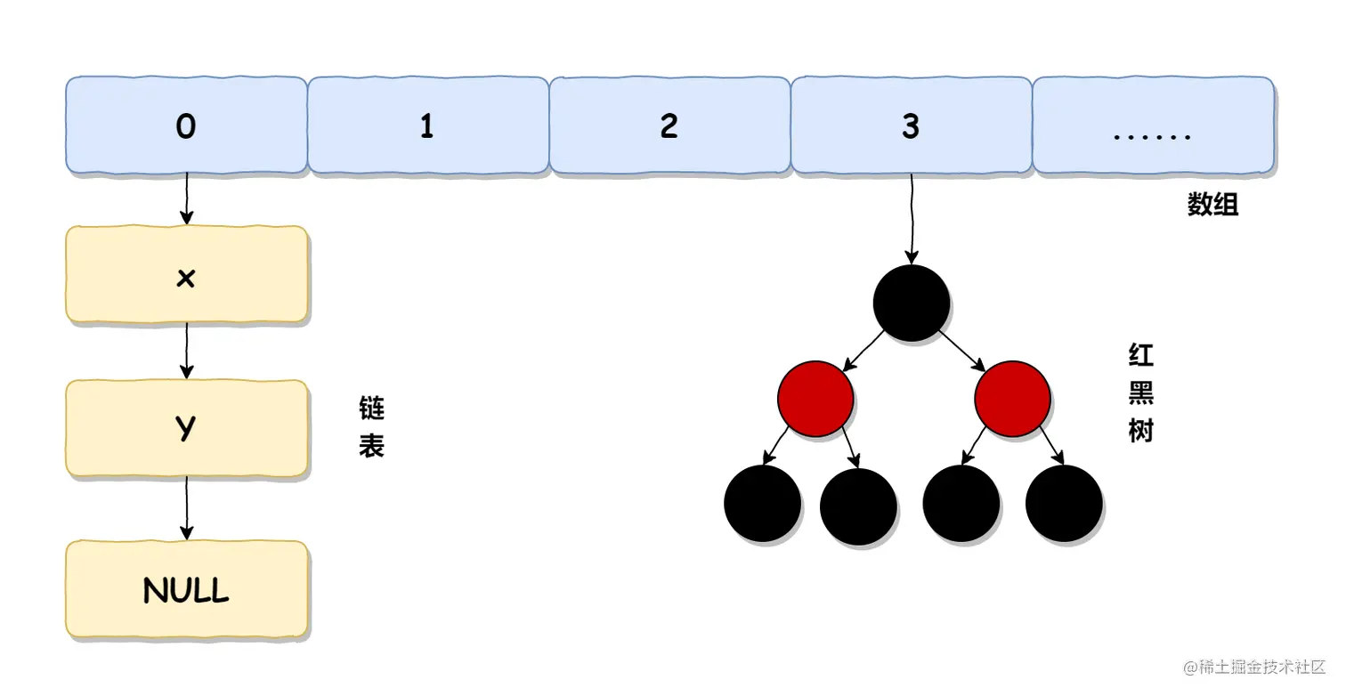 存储结构不同:链地址法规定了存储的结构为链表(每个桶为一个链表),每次将值存储到链表的末尾;而开放地址法未规定存储的结构,所以它可以是链表也可以是树结构等。
