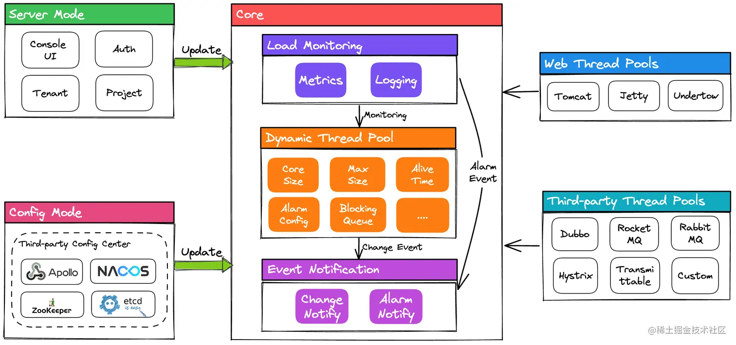 Hippo4j 是一款异步线程池框架,支持线程池动态变更&监控&报警,无需修改代码轻松引入。