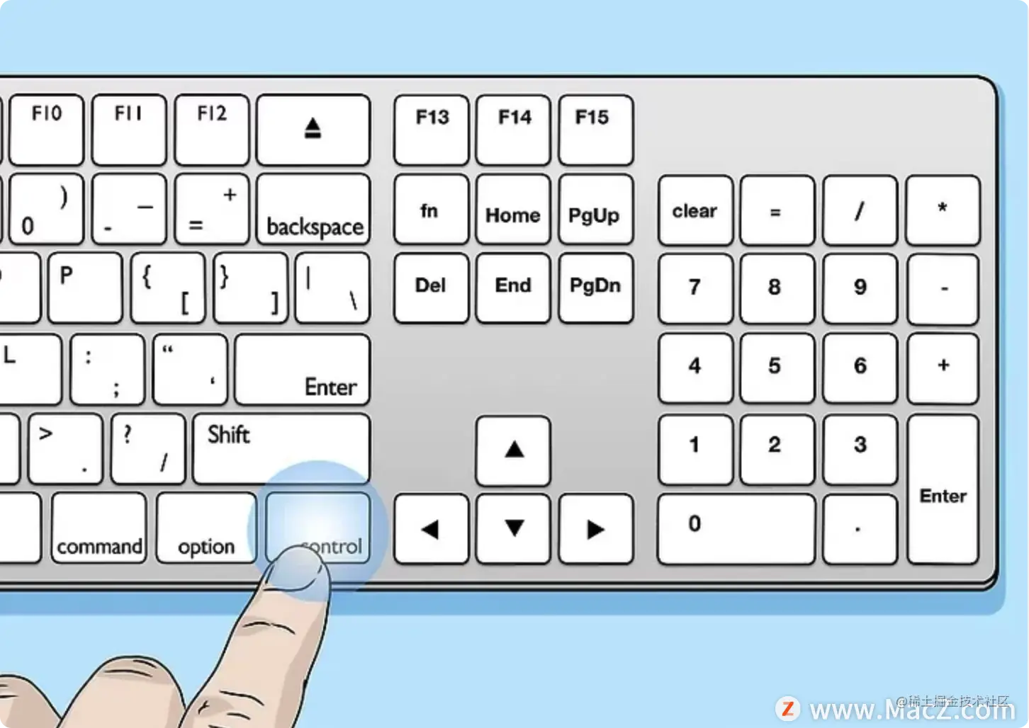 2、当您准备好放大或缩小时,请按修饰键。 例如,如果您选择了 Control 键,请立即按住它。