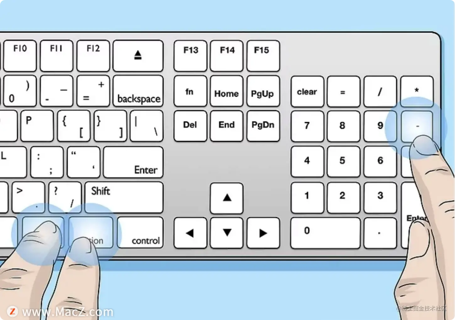 7、按⌥ Option+ ⌘ Command+-缩小。 这会缩小整个屏幕。与放大一样,您可以继续按此快捷方式根据需要缩小。