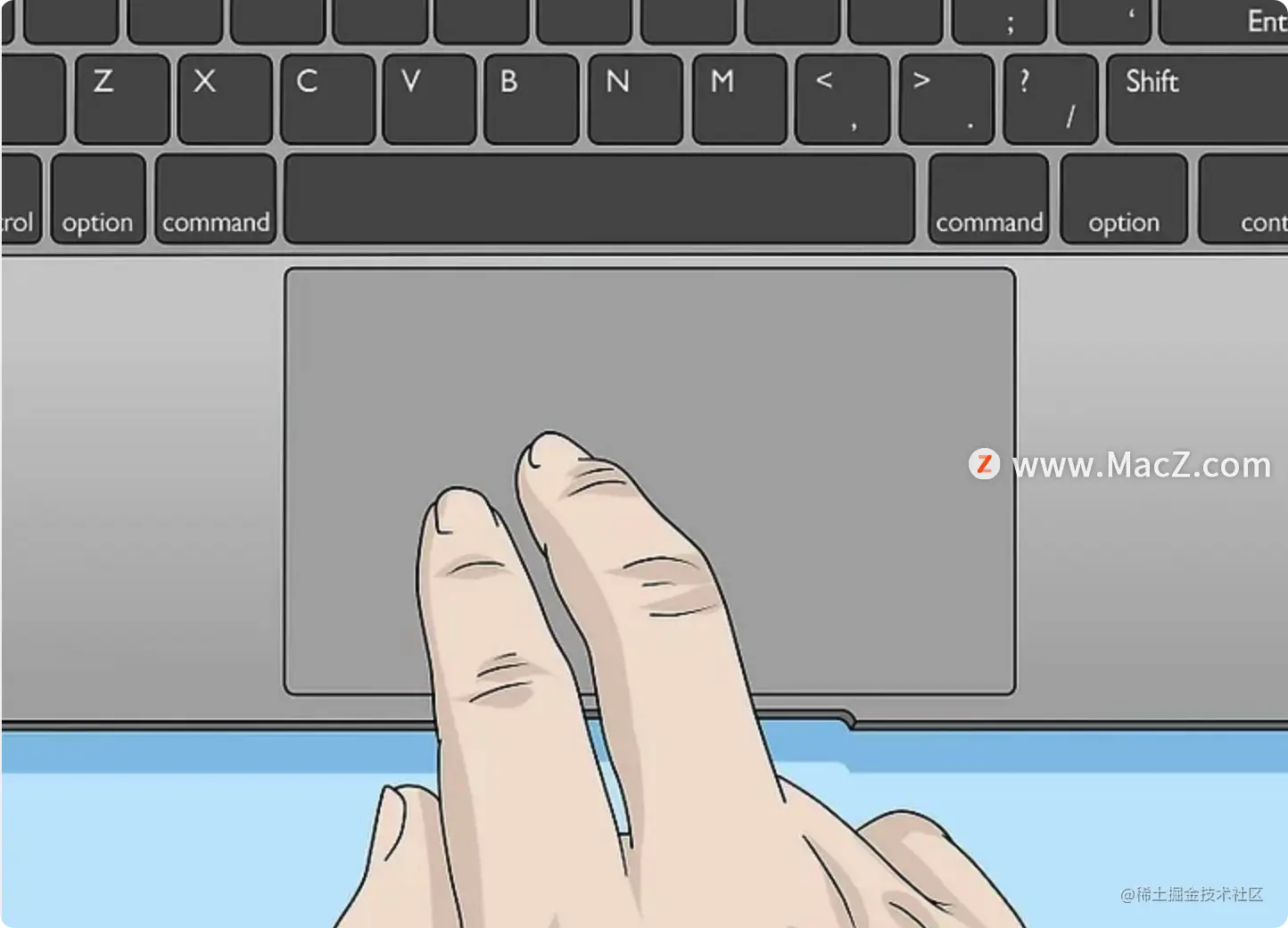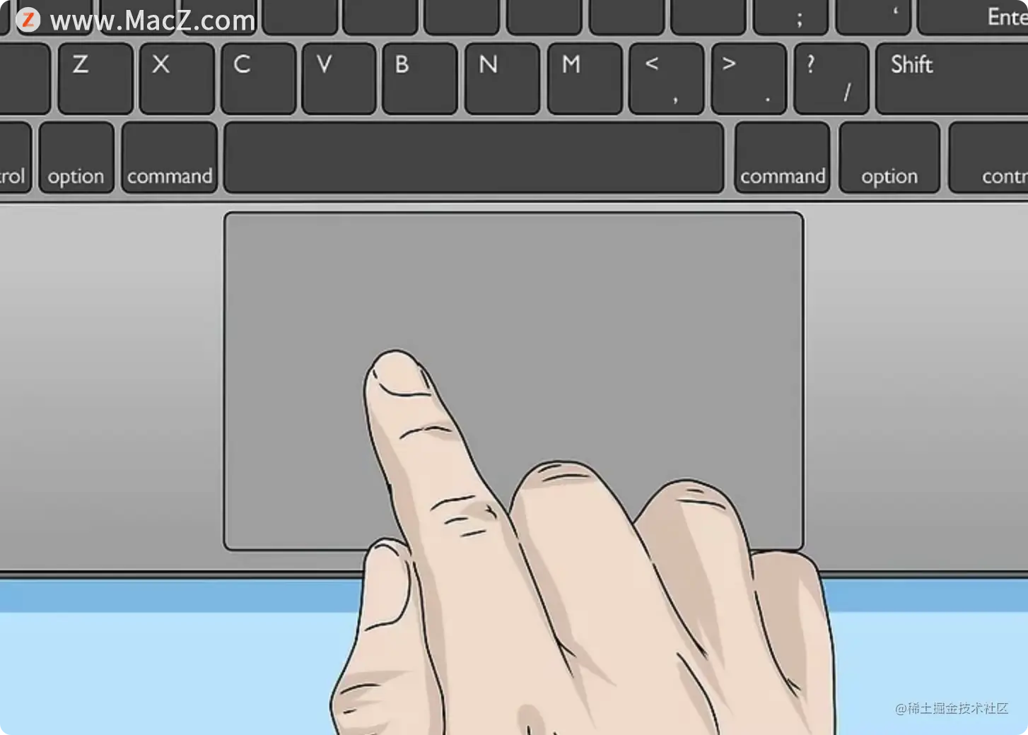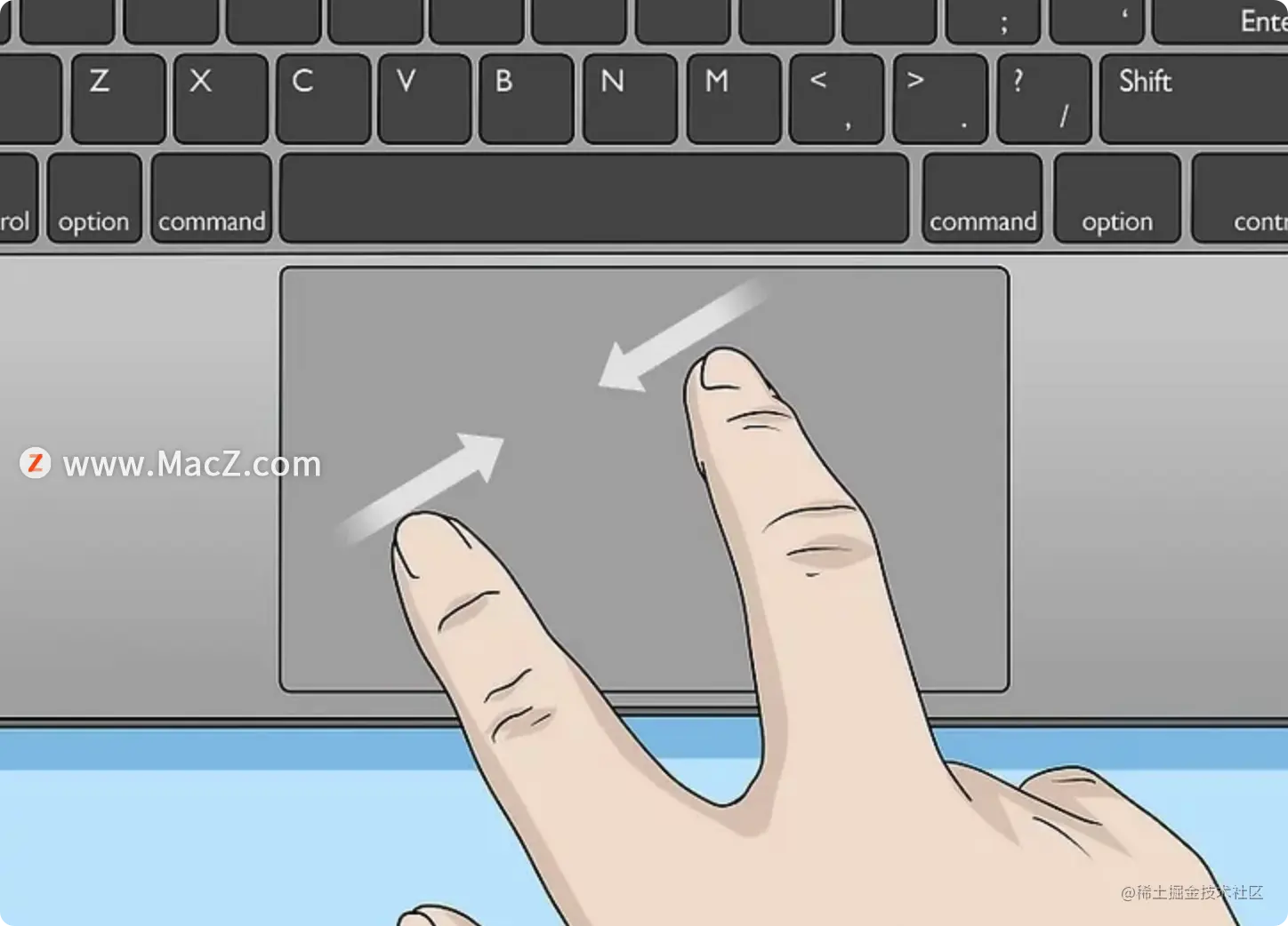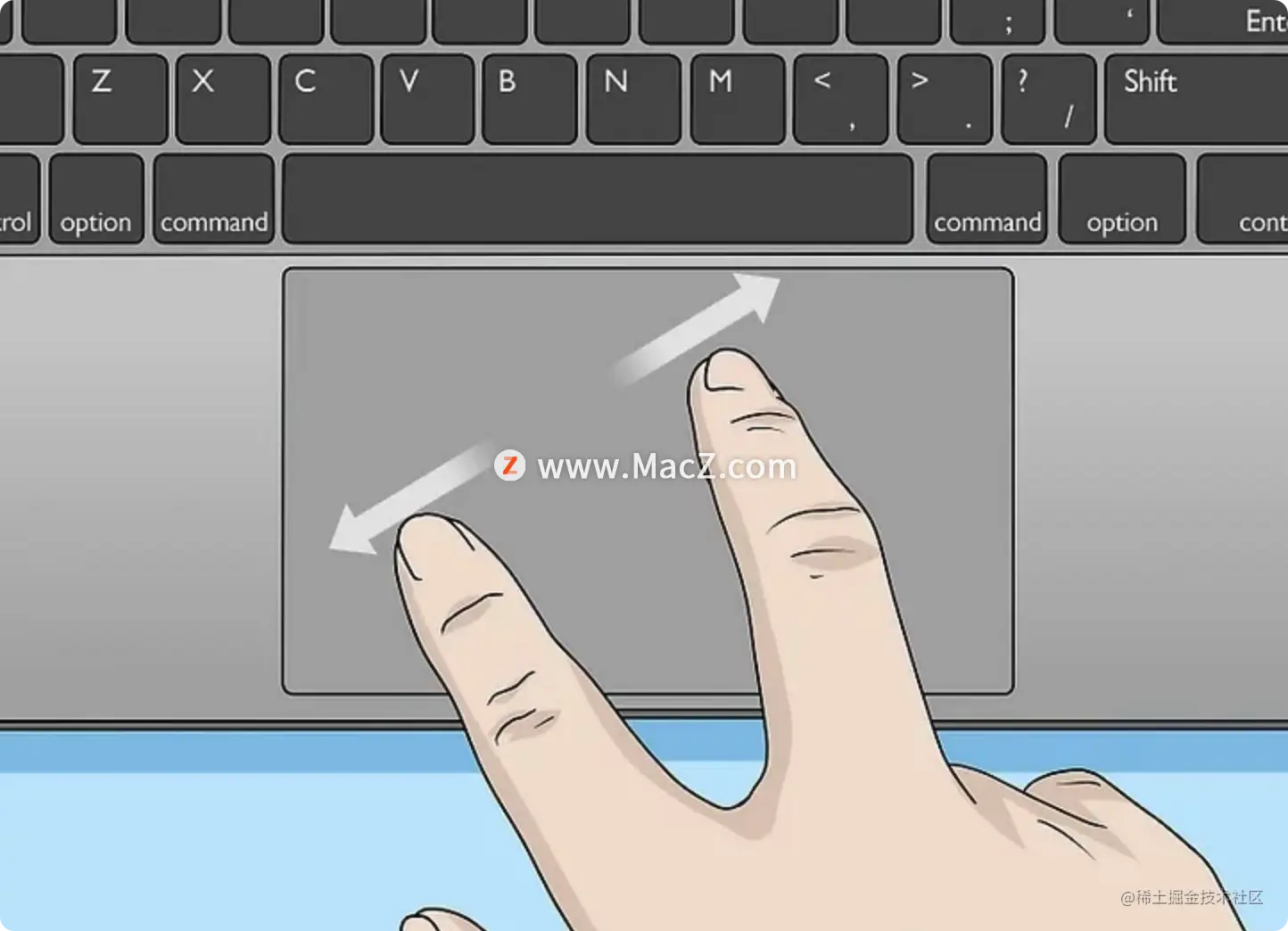 2、将两根手指并拢放在触控板上。 在您要放大或缩小的区域上执行此操作。