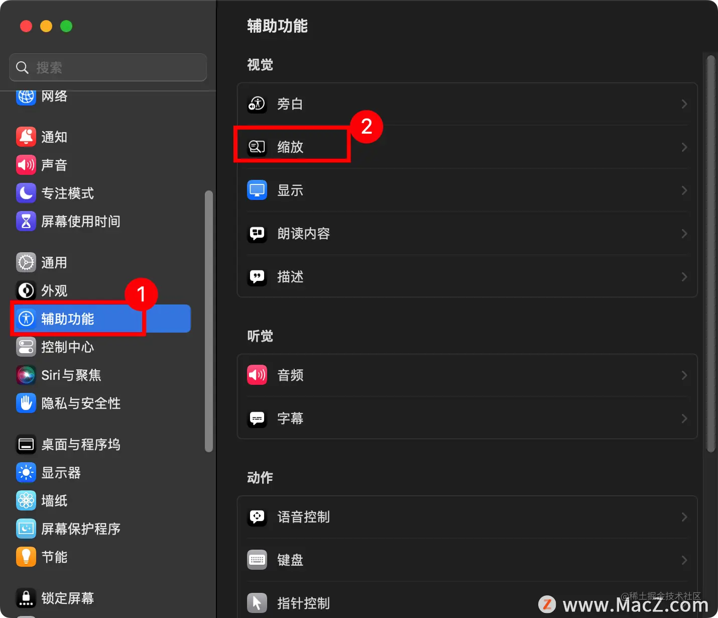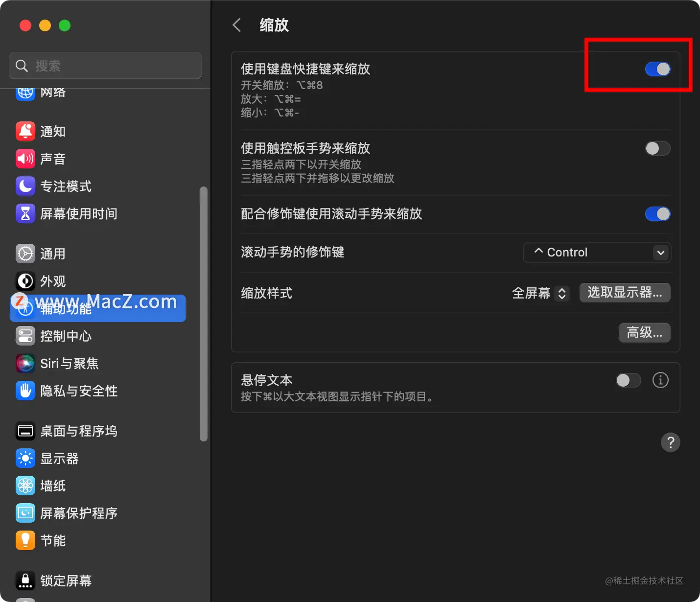 5、按⌥ Option+ ⌘ Command+8可打开或关闭辅助功能键盘快捷键。 全屏缩放快捷方式仅在您打开此功能时可用。