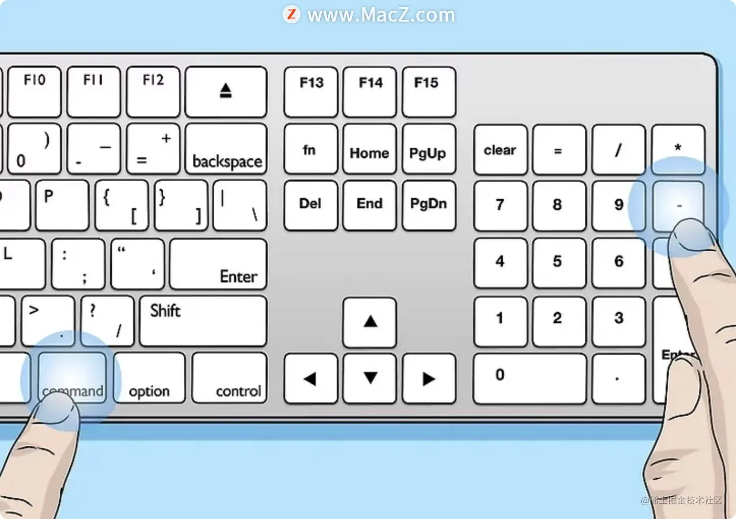 3、按⌘ Command+-缩小。 这会缩小打开的窗口。
