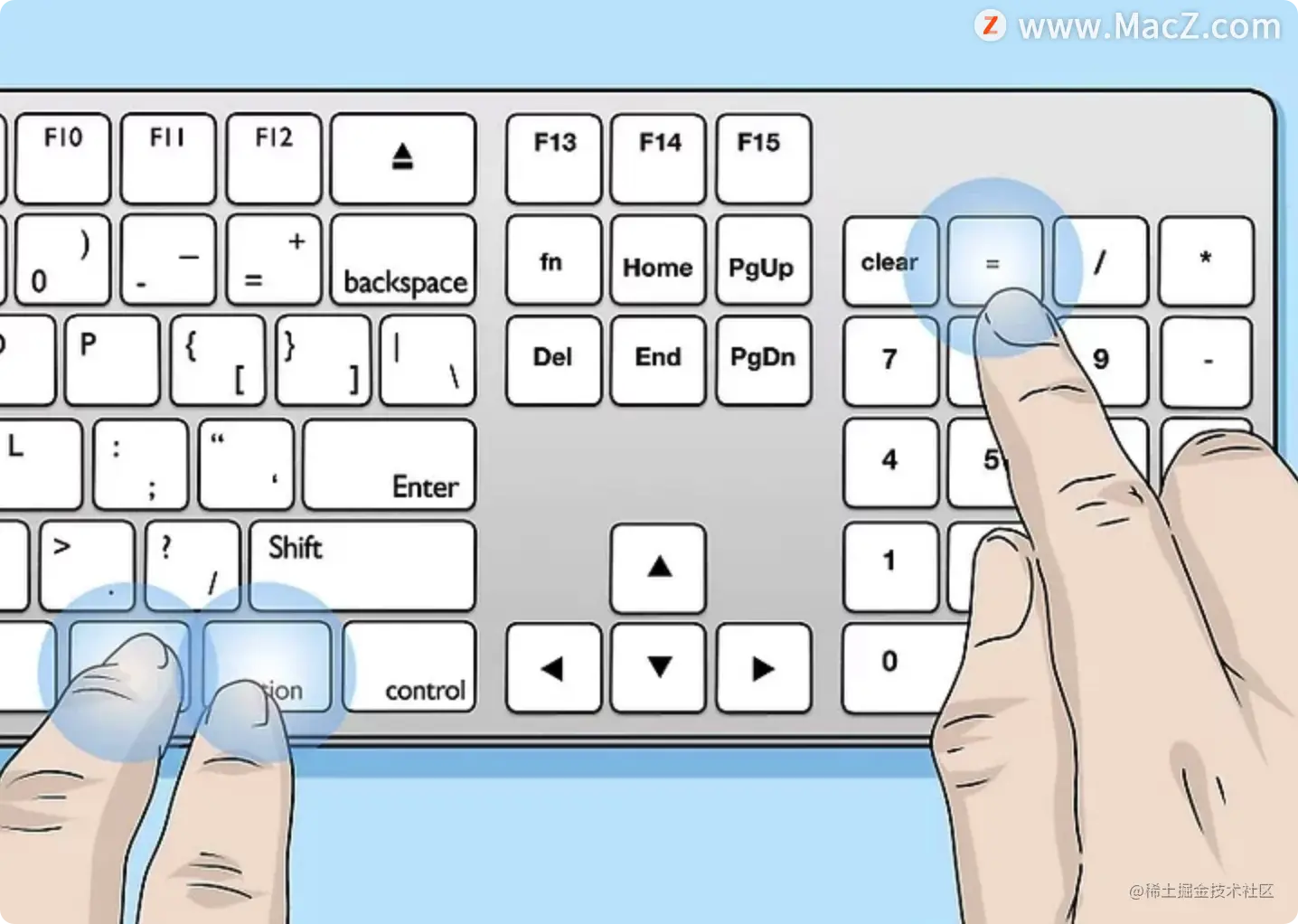 6、按⌥ Option+ ⌘ Command+=放大。 这会放大整个屏幕。继续按此键盘快捷键可放大到您想要的程度。