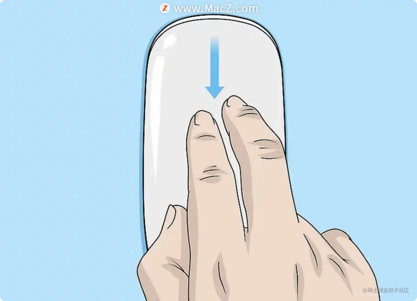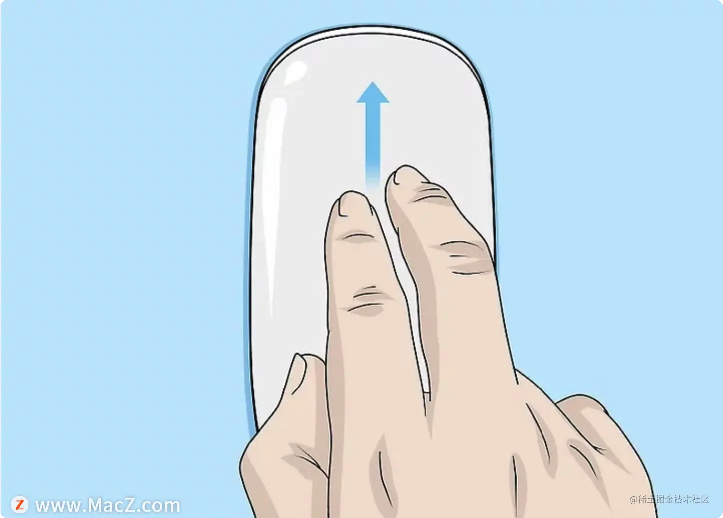 4、在鼠标滚轮上向下滚动以缩小。 使用妙控鼠标或触控板,改为使用两根手指向下滑动。
