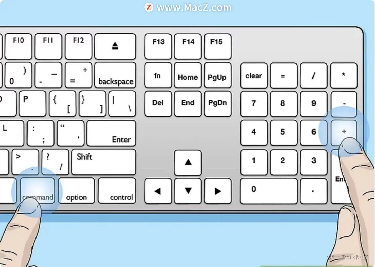 2、按⌘ Command++** 可放大。** 同时按住这些键可放大窗口内容,以便您看得更清楚。