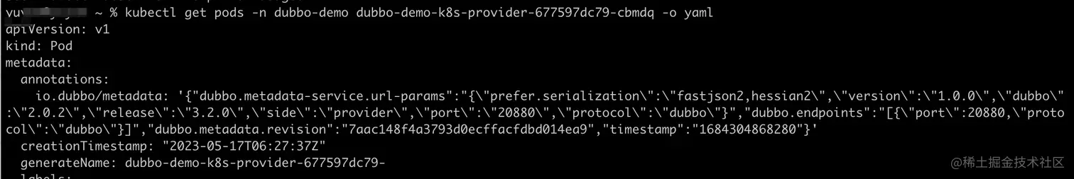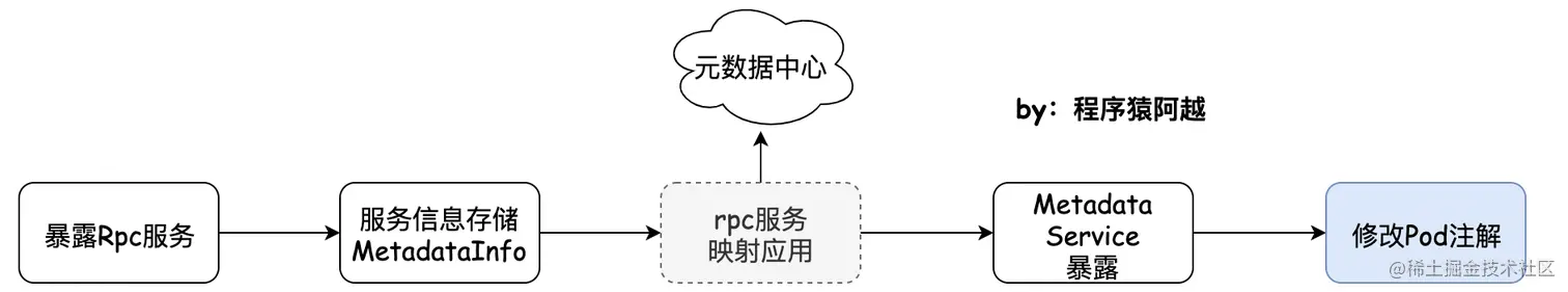 比较重要的是,provider在启动的最后阶段,暴露元数据服务之后,会修改pod的注解。