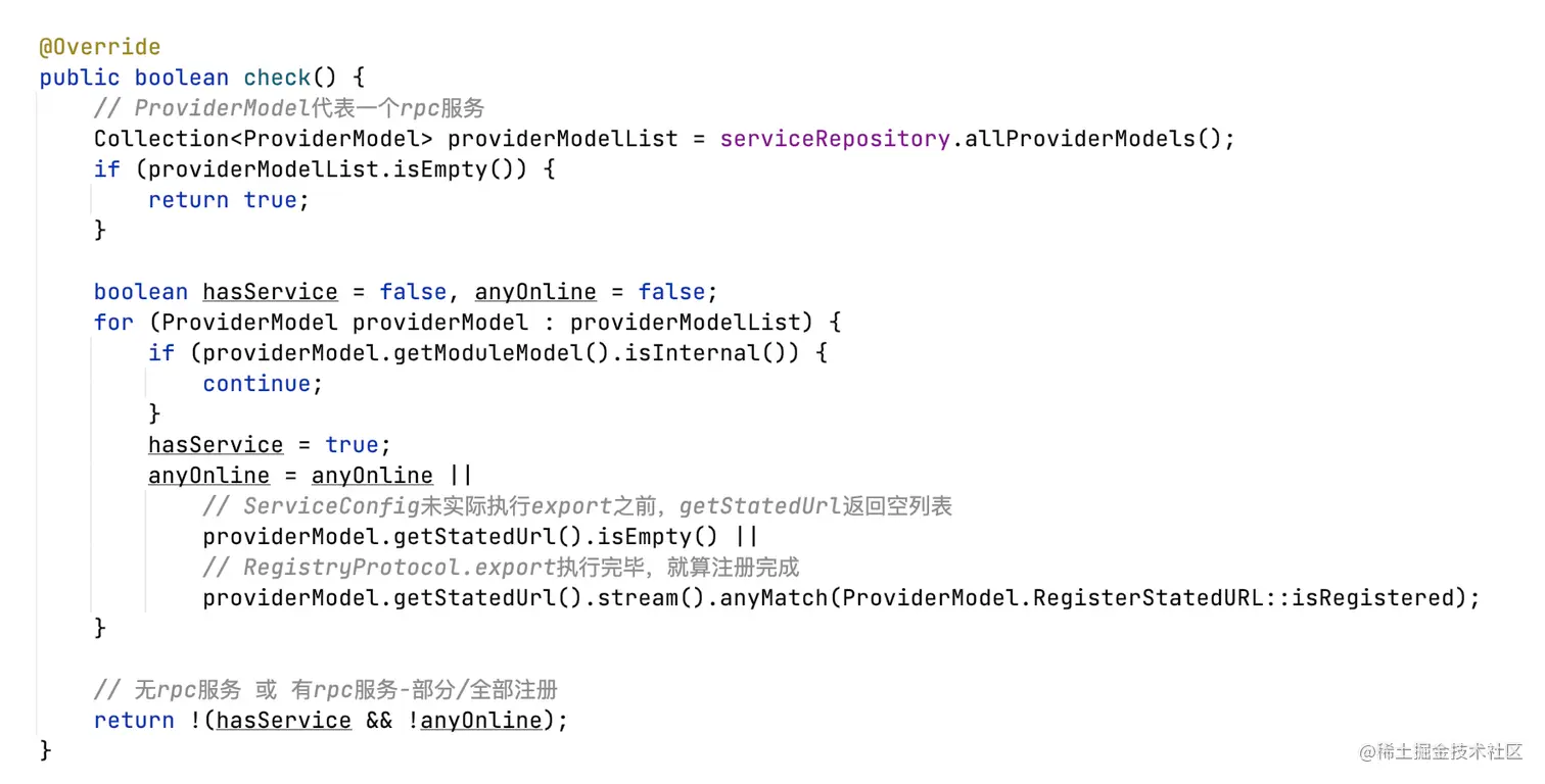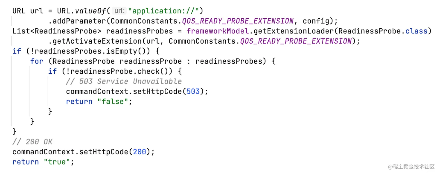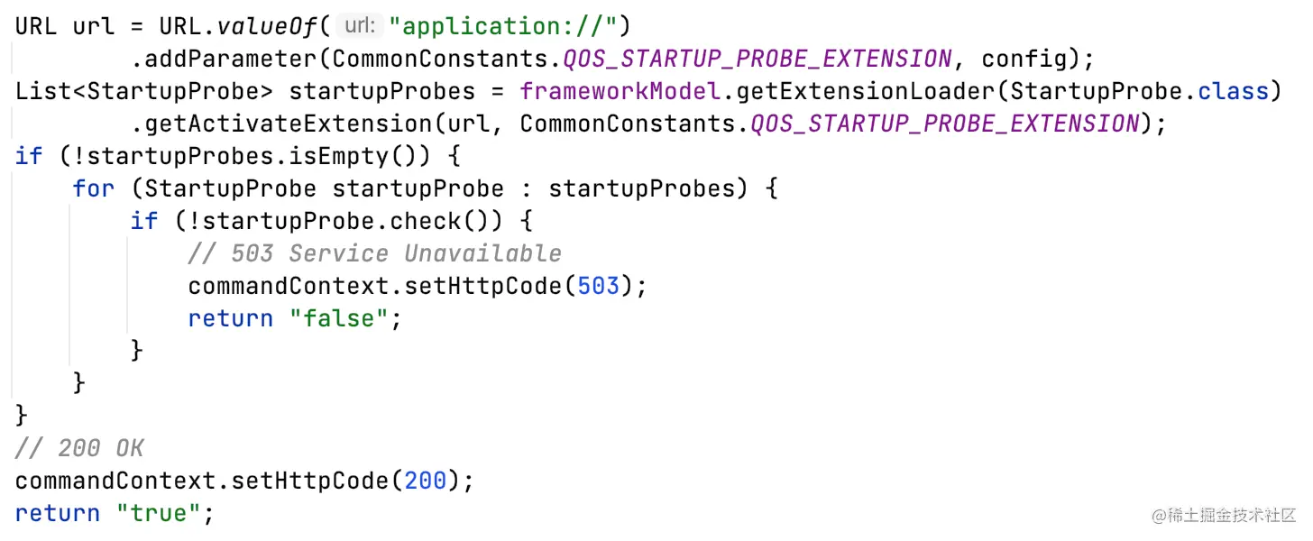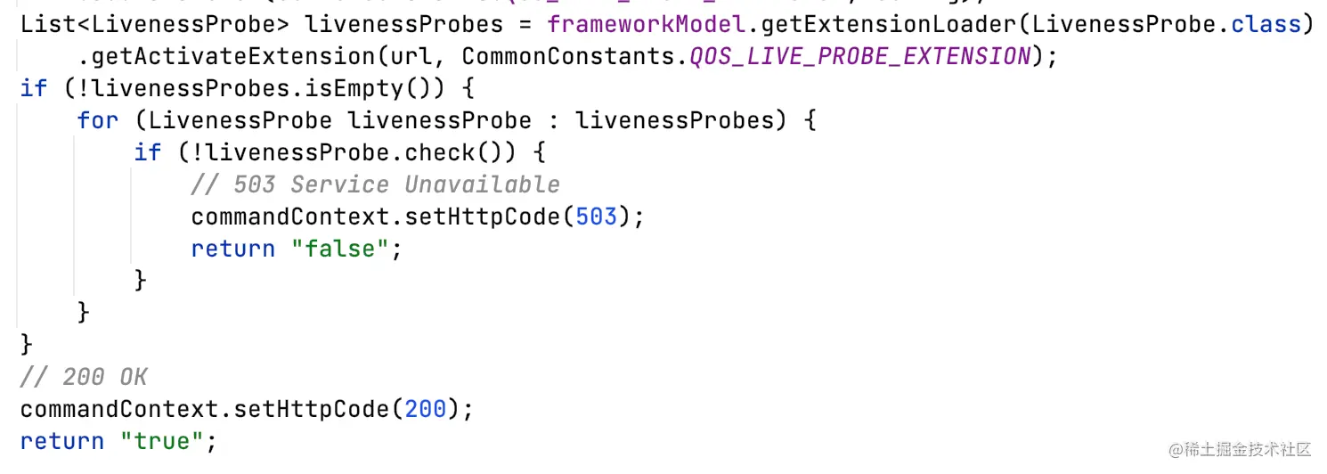 dubbo-qos模块提供了几个探针的默认实现,同一个类型的探针,需要全部校验通过,才算通过。
