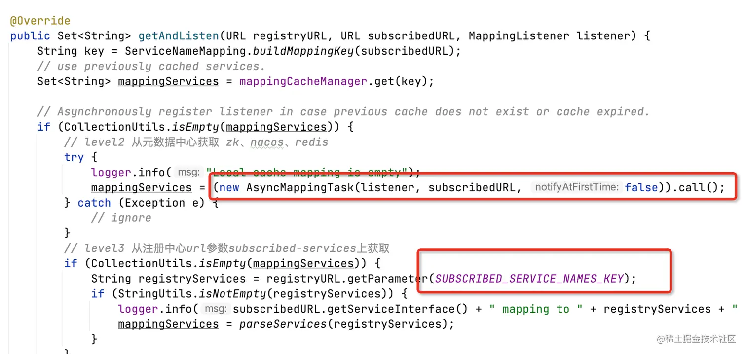 其次从注册中心url上的subscribed-services参数获取,这种配置方式作用于未配置providedBy的所有Reference。