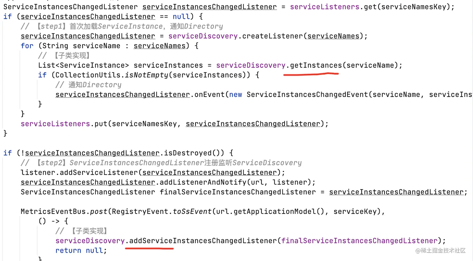 2)ServiceDiscovery#addServiceInstancesChangedListener订阅ServiceInstance变更;
