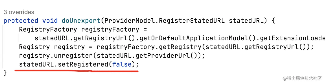所谓rpc服务下线,即ProviderModel.RegisterStatedURL#isRegistered=false。