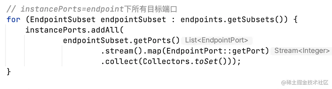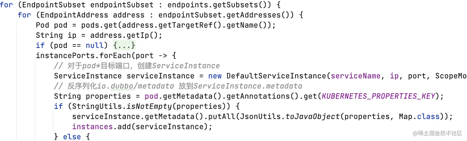 2)其次,取ServiceInstance.metadata的dubbo.endpoints对应端口,这个是对端写在pod注解里的;