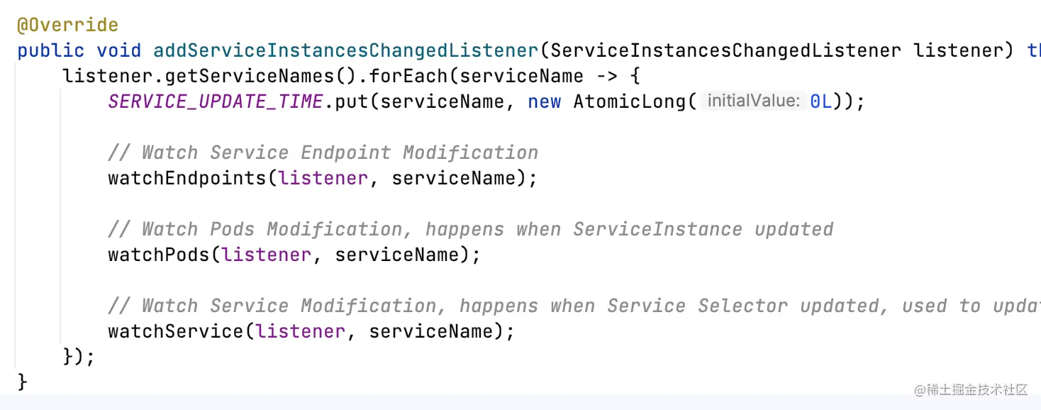KubernetesServiceDiscovery#addServiceInstancesChangedListener: