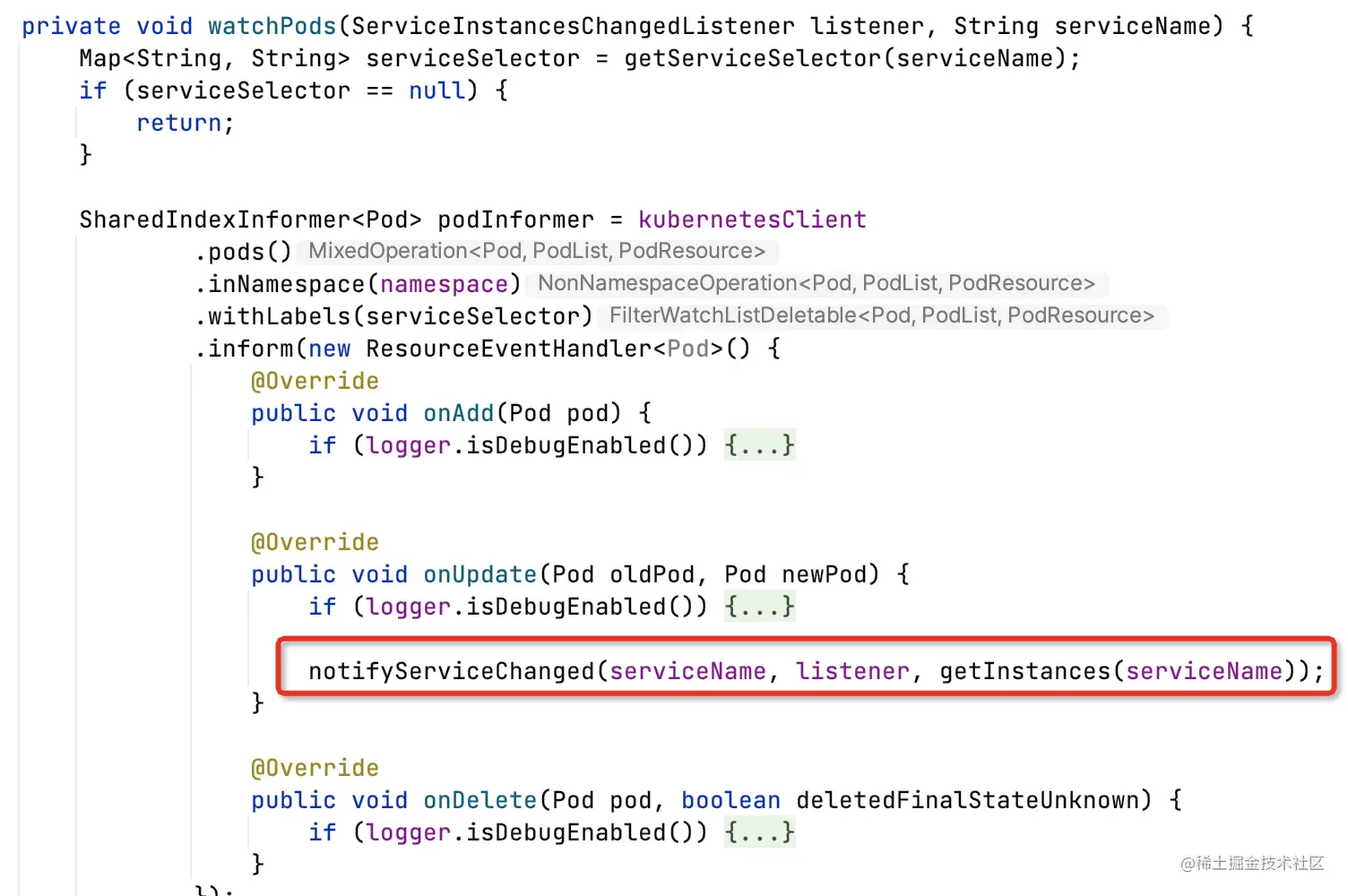 需要销毁原有Service下的Pod监听,重新触发watchPods。