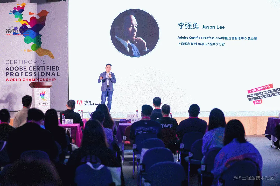 由Adobe Certified Professional中国运营管理中心总经理李强勇先生为本次大赛致辞,他表示:希望大家能够继续关注和支持数字化时代下的创意设计教育,培养更多具有实操能力和创意思维的人才,为推动社会和文化的发展做出更多的贡献。