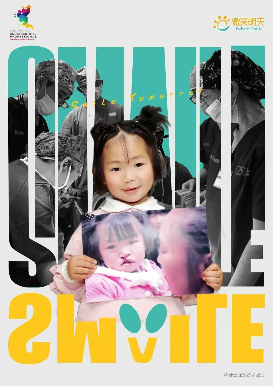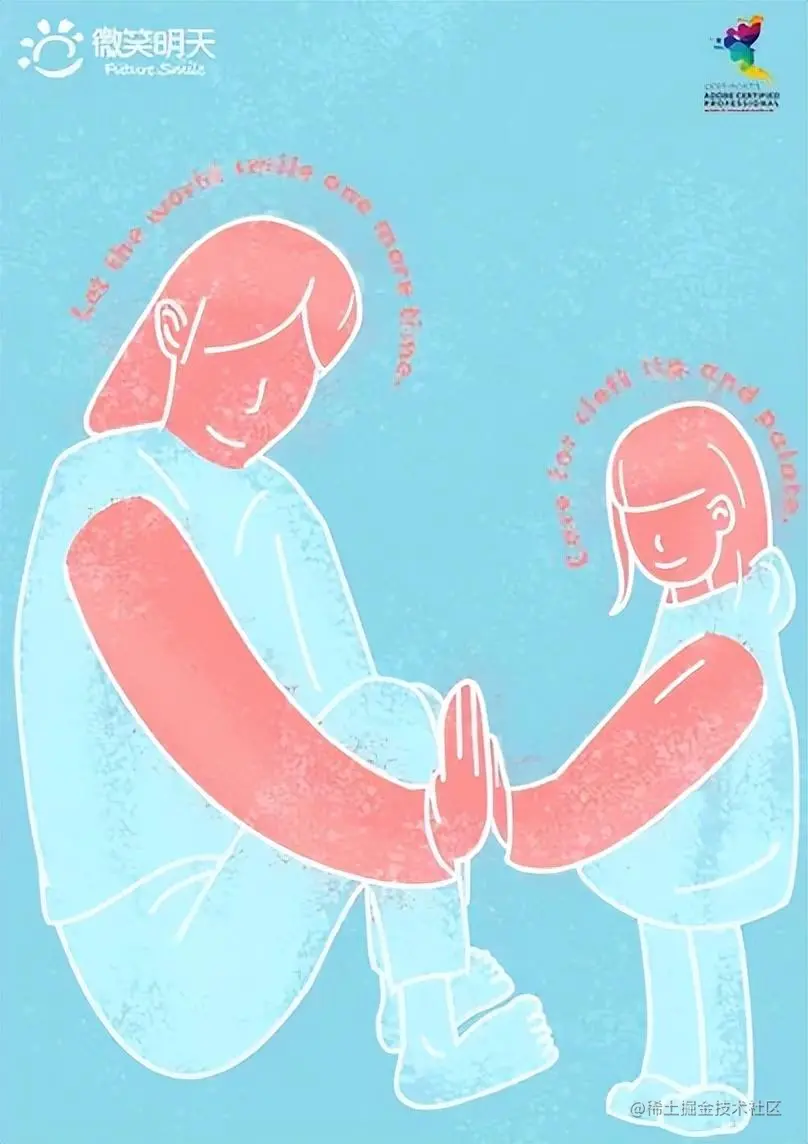 我们可以看到,在第一眼感受这个作品时,会看到这个作品是有一个笑脸位于整个海报中央,而这个笑脸则是大人在帮助小孩时两人的手所构成的,很好地点明了本次大赛的主题,同时,作者用版画式方式来创作本次作品,线条周围还做了很多肌理处理,技术方面也得到了评委组的一致认可!是一份不可多得的佳作!