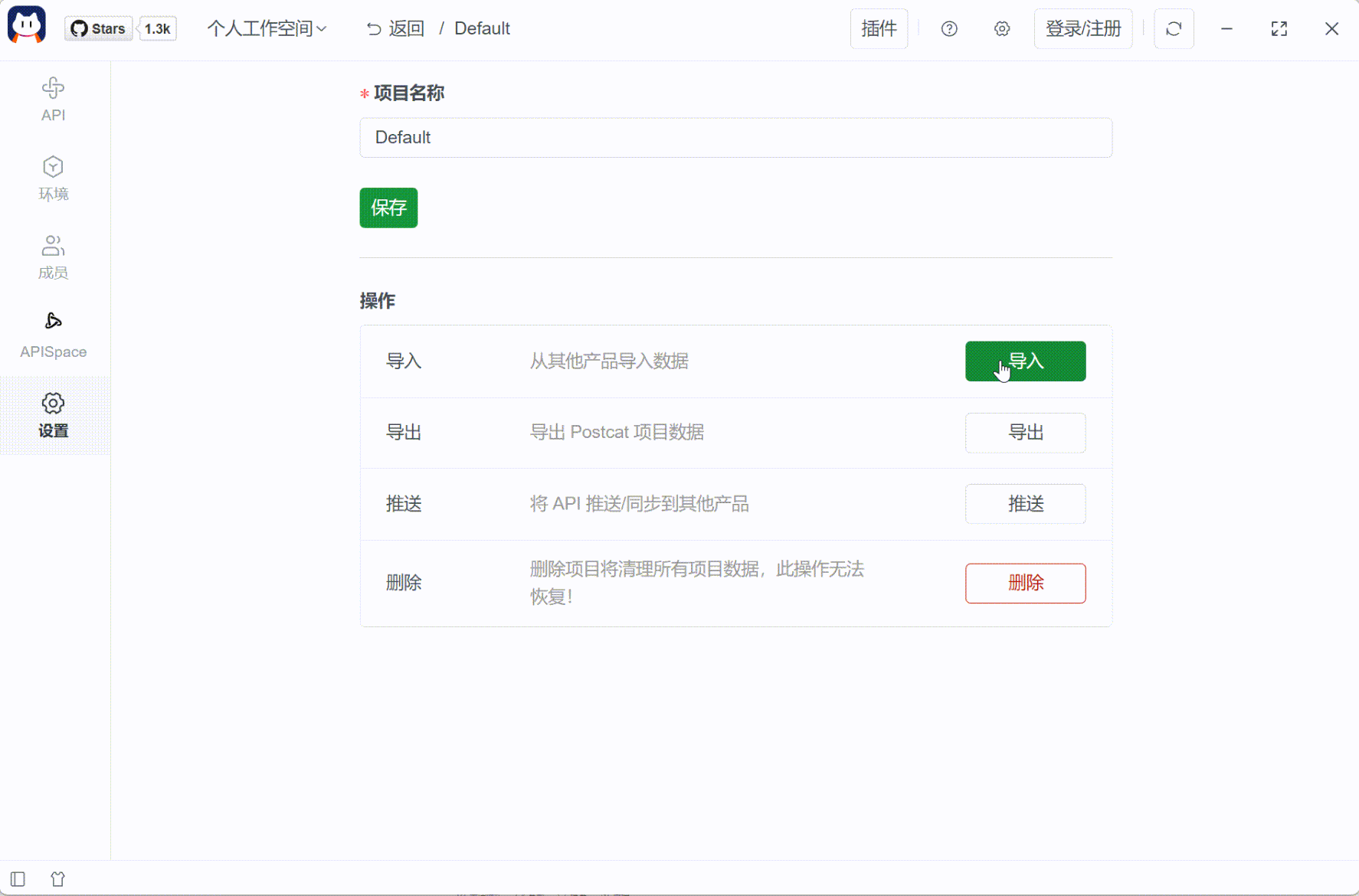 导入功能有多个入口,你可以在 API 分组处点击加号导入 API: