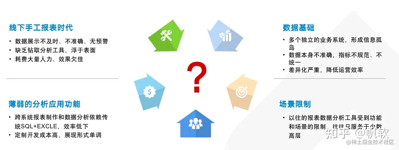 不管是国企、央企还是私人企业,近几年谈最多的就是数字化转型,但真正做到数字化转型的企业,其实不多。帆软君总结了一下目前大多数企业的现状,大概就是下面几个:数据分散,利用率低,需求变化快但响应慢。