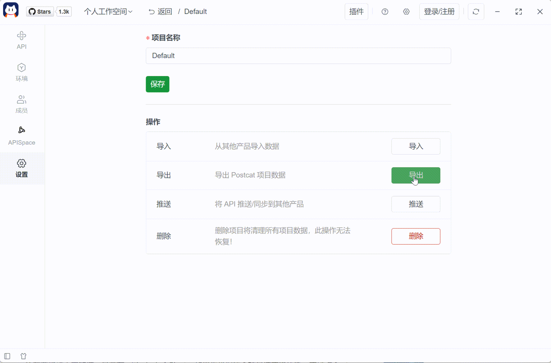 支持导出 Postcat JSON 文件。