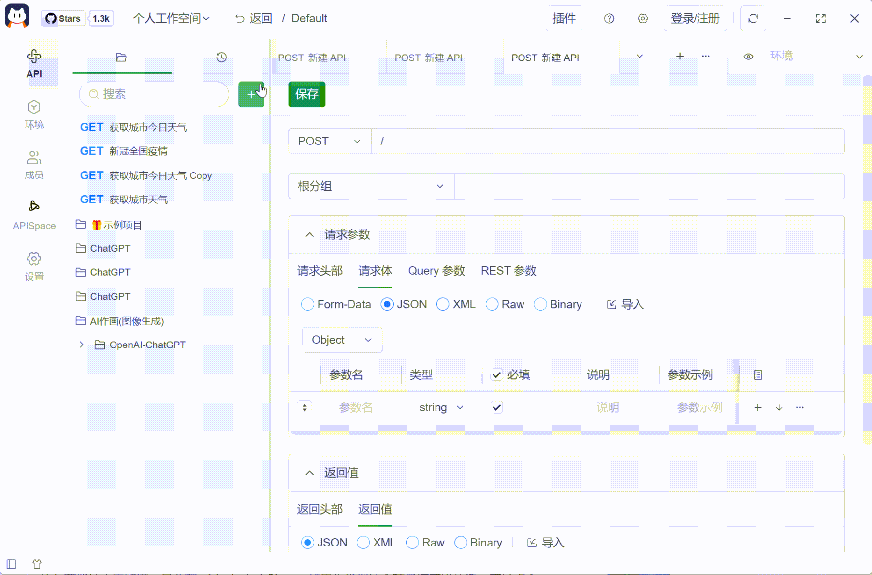 如果你日常会用到 api 管理工具的话,不妨看看我目前参与的这个开源项目,Postcat 开源的 API 管理工具,纯国产,免费的,主打插件生态,适合中小团队以及个人开发者使用,有 API 相关的核心功能。