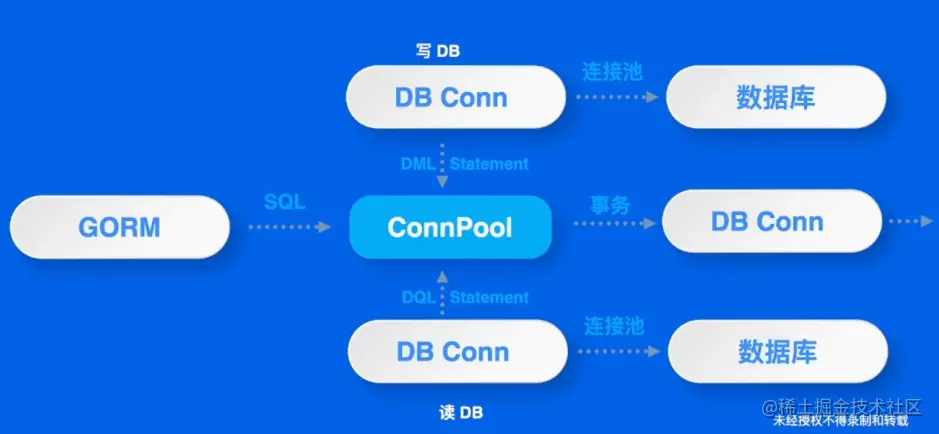 以往的数据库在进行读和写操作的时候对应的是不同的数据库,ConnPool作为数据库连接池,表示在程序启动时建立足够的数据库连接,并将这些数据库连接组成一个连接池,由程序动态地对连接池中的数据库连接进行申请、使用、释放。