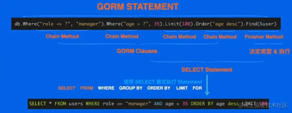 ②GORM Statement对SQL语句进行一个仿生的设计,相比于SQL语句可以更好地去扩展