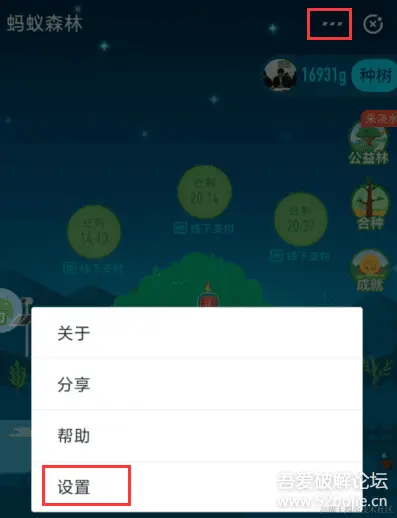 进入蚂蚁森林,点右上角“...”,进入设置,开启提醒