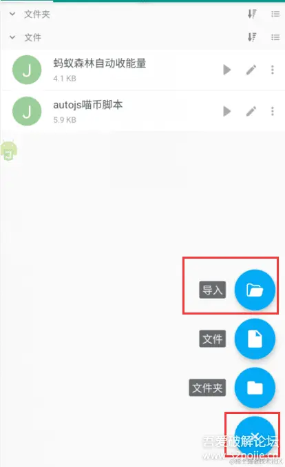 打开autojs app,点击导入