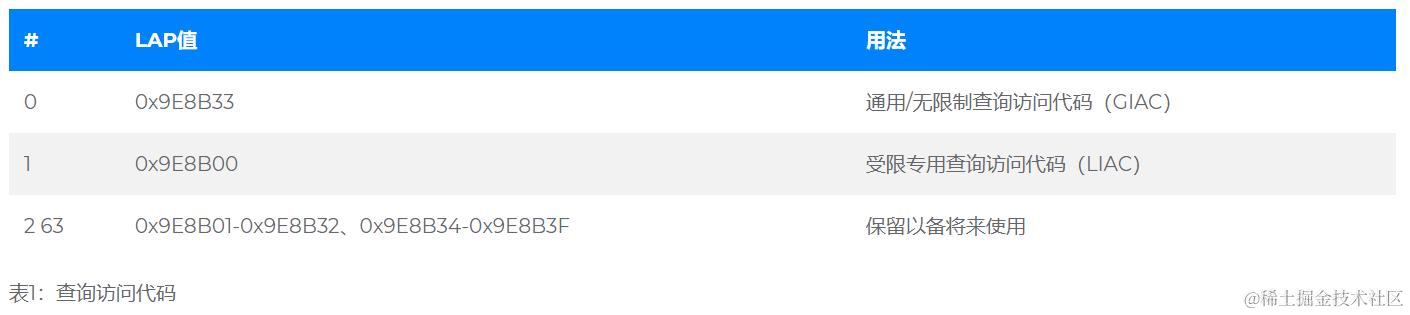 该查询访问码(IAC)是寻找过滤的第一级 的蓝牙® 设备和服务。定义多个IAC的主要目的是限制扫描范围内的设备时的响应数量。