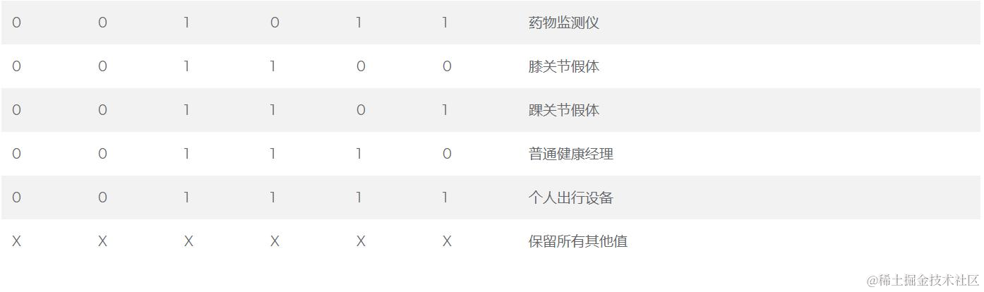次要类段是定义蓝牙设备的最低粒度级别。有64种可能的次要类。