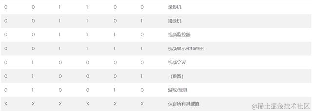 次要设备类别字段-音频/视频主要类别