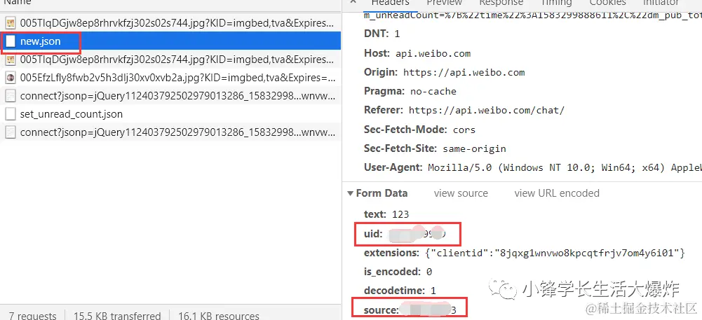 随便发一条消息给小冰,在head界面找到source值和uid值(非常重要)