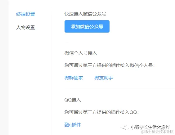 可以接入微信个人号、微信公众号、QQ个人号、API调用