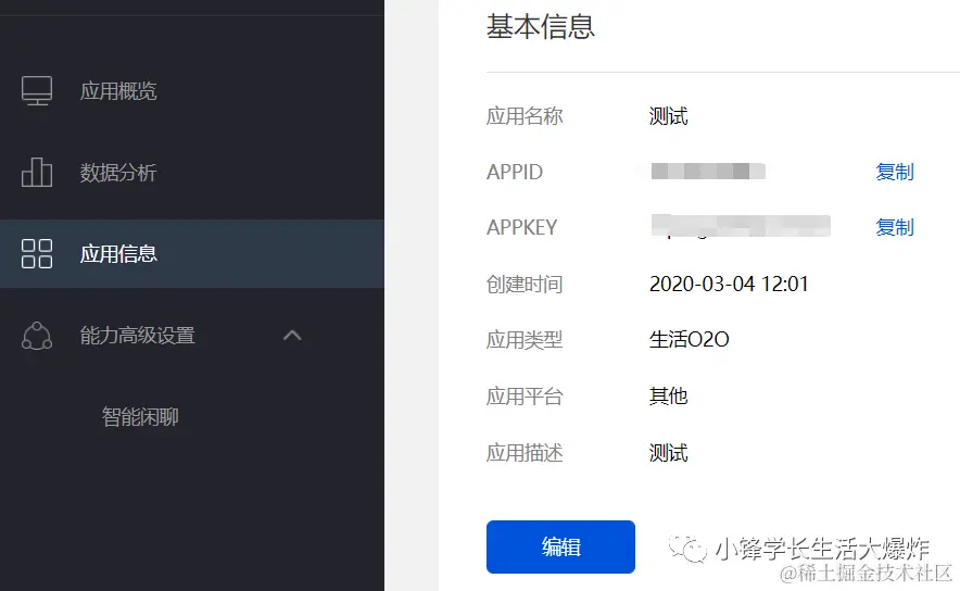 拿到API key,注意下面的密钥不要打开!
