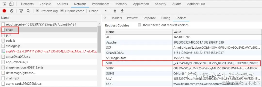 领养完成后,按F12打开调试窗口,在Cookie界面找到SUB值(非常重要)