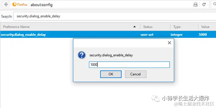 每次安装Firefox插件时,您都必须等待几秒钟才能开始实际的安装。为了减少这种等待时间,您可以将security.dialog_enable_delay关闭,以便立即开始安装。