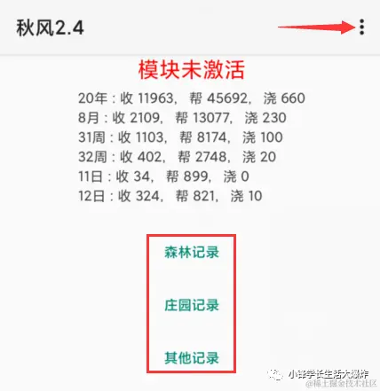 5、直接点方框里面的3个记录。里面提示有消息,就说明成功了。其他功能在右上角设置,自己需要什么点什么