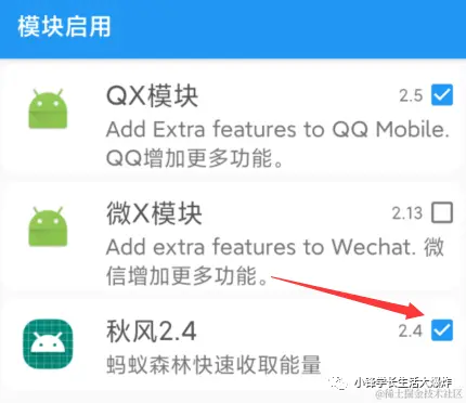 3、点击 “应用转生” 的 “+” 号下面的那个图标,进去后勾选 “秋风” 模块