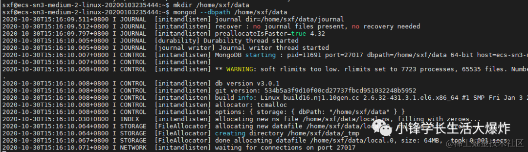 用以下命令启动mongod: