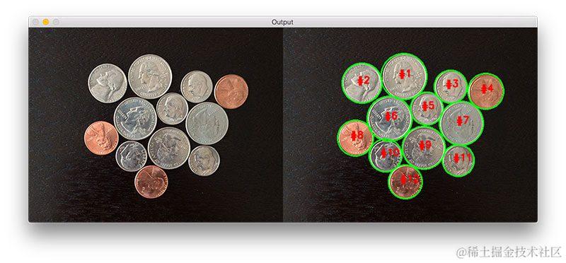 cv2.putText(image, "#{}".format(i + 1), (int(x) - 10, int(y)), cv2.FONT_HERSHEY_SIMPLEX, 0.6, (0, 0, 255), 2)
