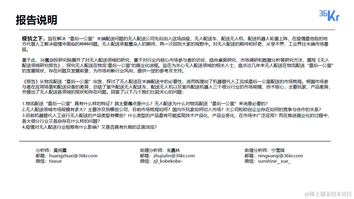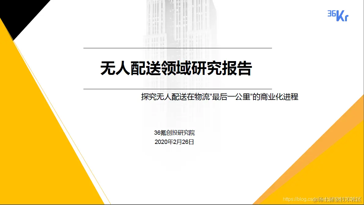 2020无人配送领域研究报告 小锋学长生活大爆炸 2023-05-22 35 阅读1分钟 希望对有需要的人能有一点点帮助,获取原件可关注公众号“xfxuezhang”后发送“2020无人配送领域研究报告”。