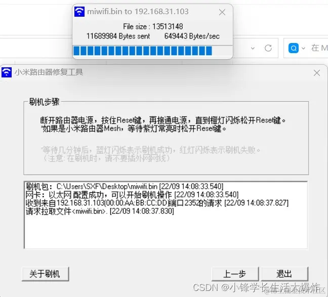 观察路由器的灯,如果等了一段时间,发现路由器无限重启,或者进不去系统,可以回到步骤1,重新刷入之前能用的固件即可。