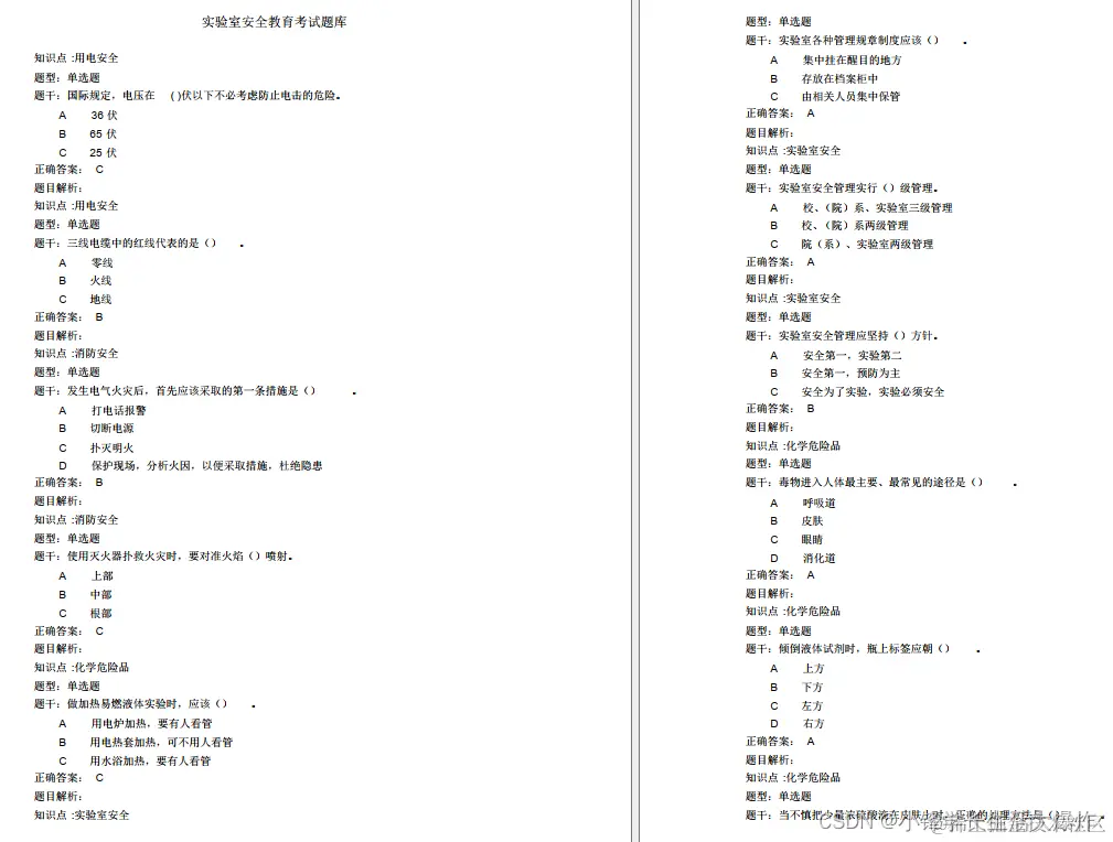 【题库】华南理工大学研究生实验室安全教育考试638页 小锋学长生活大爆炸 2023-05-22 313 阅读1分钟 638页44万字超全题库 由于内容过多,CSDN不能放下,因此请转到以下链接: 【题库】华南理工大学研究生实验室安全教育考试-638页 - 小锋学长生活大爆炸