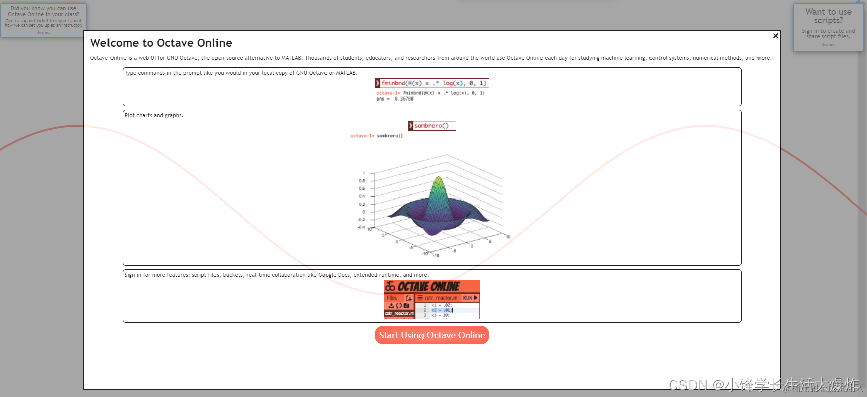 Octave Online是GNU Octave的Web UI,GNU Octave是MATLAB的开源替代品。