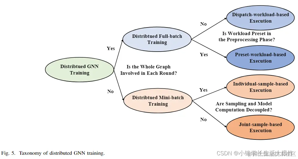 在本文中,我们全面回顾了 GNN 的分布式训练。在调查了最近在分布式 GNN 训练方面的努力之后,我们根据他们的工作流程对它们进行了更详细的分类,包括基于调度工作负载的执行以及分布式全批训练的基于预设工作负载的执行,以及个人-基于样本的执行以及分布式小批量训练的基于联合样本的执行。总结了每个分类法的工作流程、计算模式和通信模式,并进一步介绍了各种优化技术,以促进对最新研究状况的理解,并使读者能够快速构建 GNN 分布式训练的大局。此外,本文介绍了训练软硬件平台,然后对比了分布式GNN训练和分布式DNN训练。最后,我们提供了几个关于分布式 GNN 训练的有趣问题和机会的讨论。